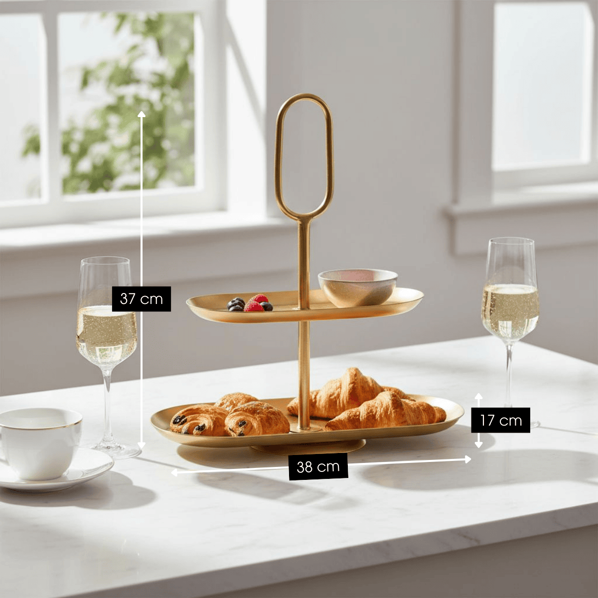 Die Amara Etagere Gold ist ein eleganter Servierturm aus Metall für Snacks und Dekoration.