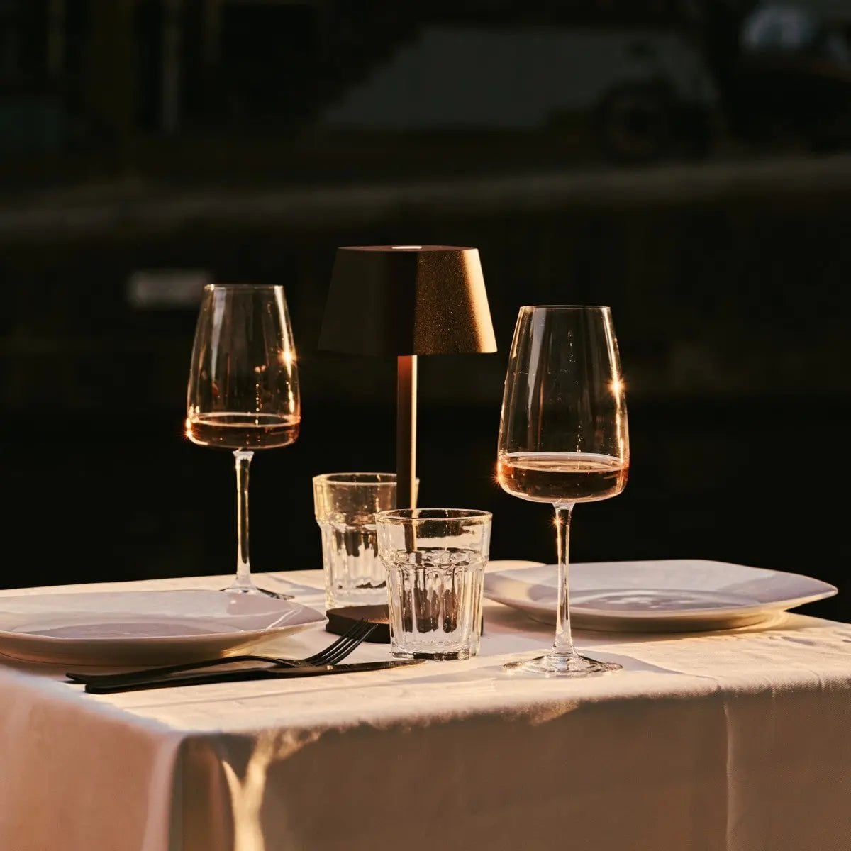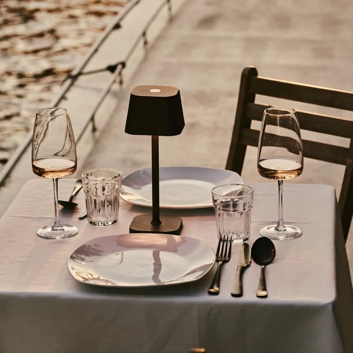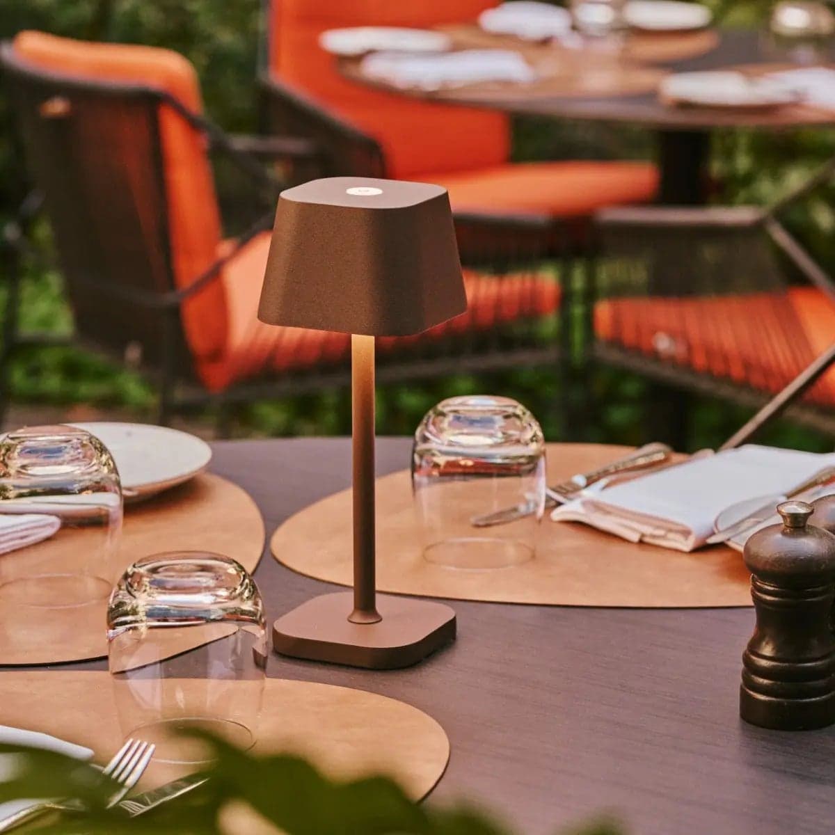 Die Arina Tischlampe Mokkabraun ist kabellos, dimmbar und bietet bis zu 120 Stunden Licht.