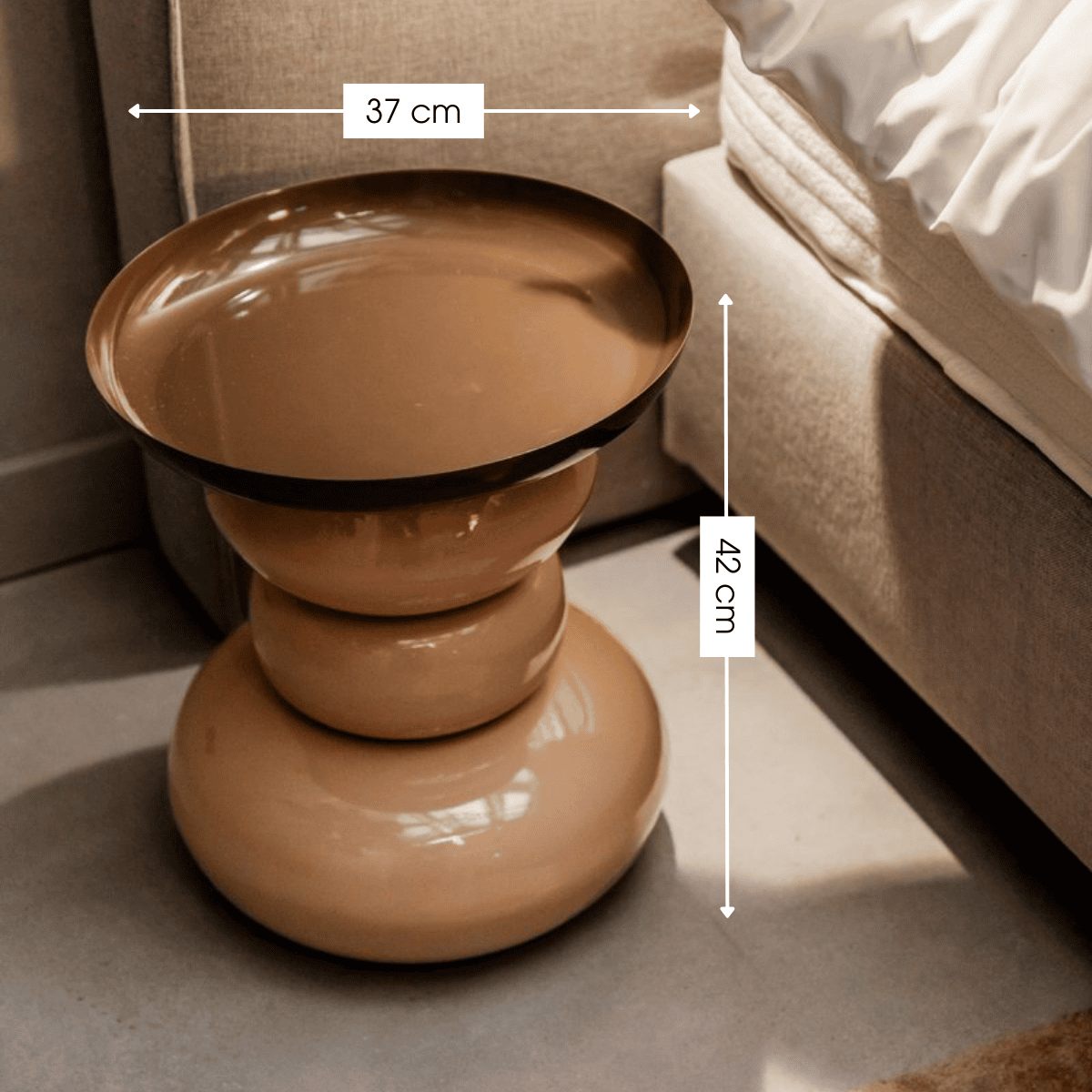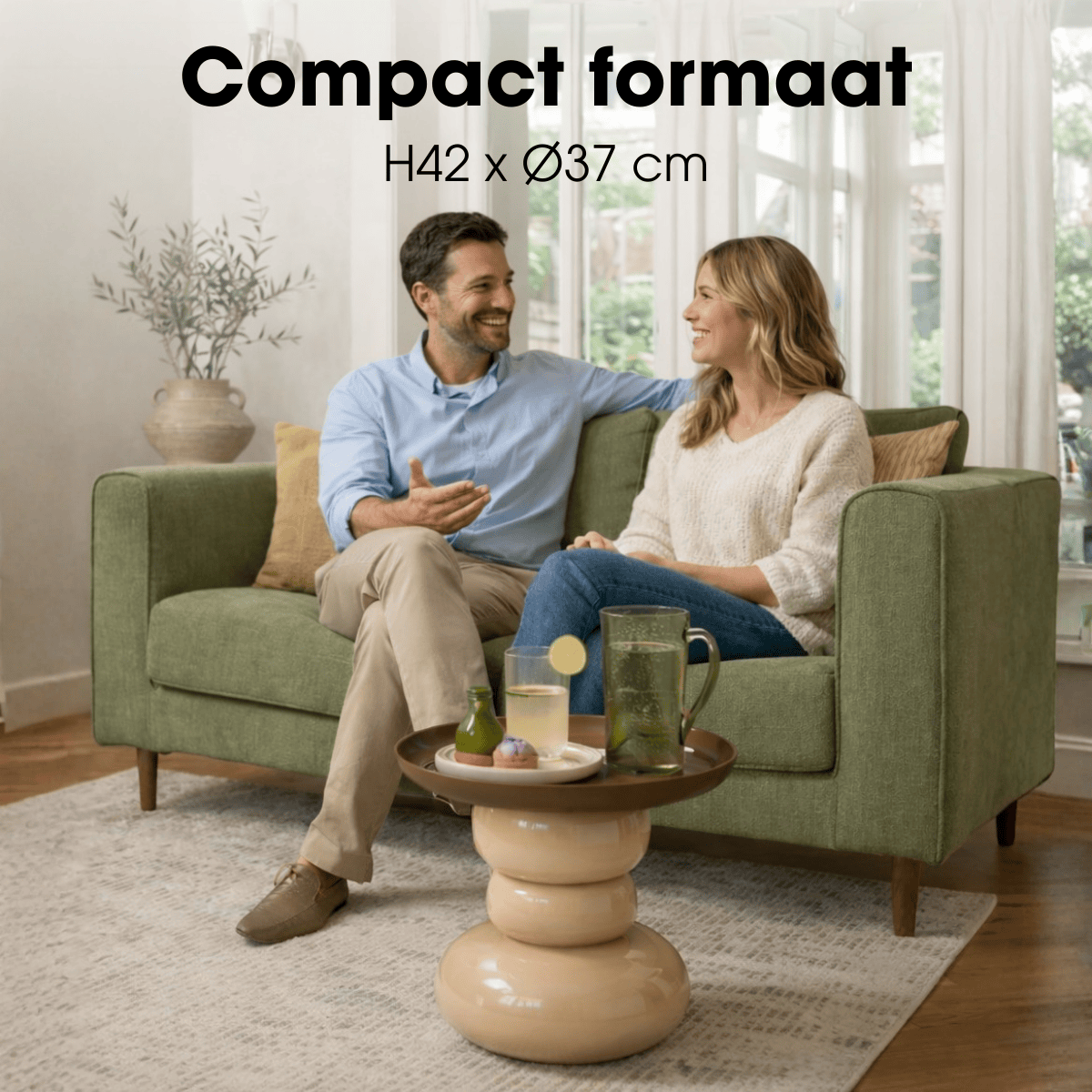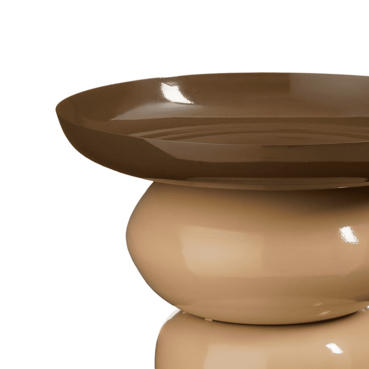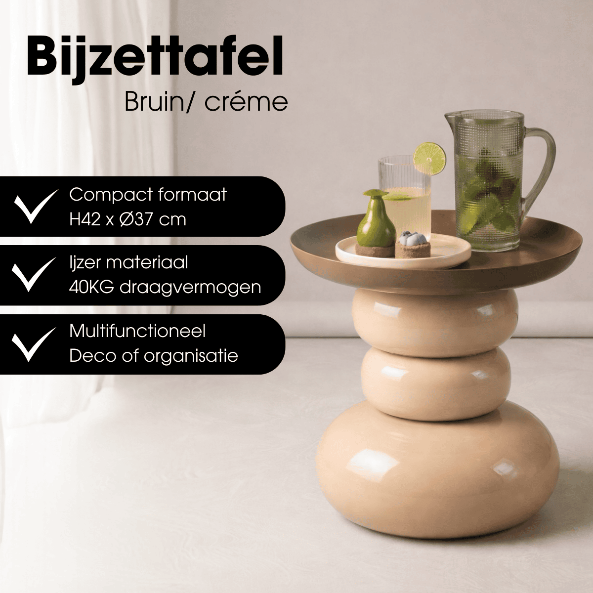 Verleihen Sie Ihrem Interieur einen auffälligen und stilvollen Akzent mit dem Zita-Beistelltisch von Mica Decorations. Dieser Beistelltisch hat ein verspieltes, rundes Design und ist in einer eleganten Kombination aus Creme und Braun gefertigt. Die glänzende Oberfläche und die geschichtete Form verleihen dem Tisch einen dekorativen Charakter, der sofort ins Auge fällt. Dank seiner kompakten Größe eignet er sich als Beistelltisch neben dem Sofa oder Sessel oder als Podest für Wohnaccessoires. Der Tisch ist handgefertigt, wird vormontiert geliefert und ist robust und praktisch in der Handhabung.