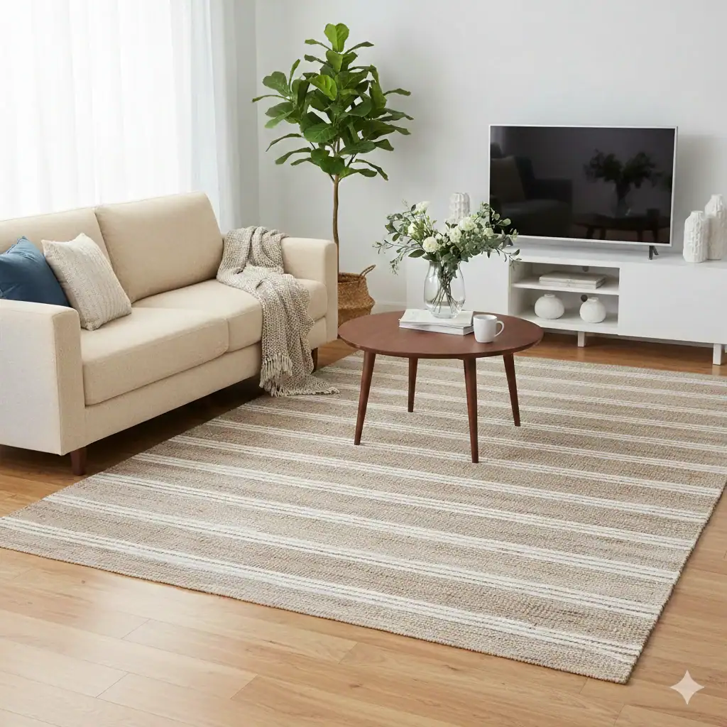 Der Kavali Teppich Natur/Elfenbein ist ein handgewebtes Kunstwerk, das Ihrem Wohnraum eine natürliche Eleganz verleiht. Mit seinen sanften Farben in Braun und Weiß fügt er sich harmonisch in verschiedene Einrichtungsstile ein. Die großzügigen Maße von 160 x 230 cm machen ihn zu einem idealen Begleiter für Wohnzimmer, Schlafzimmer oder Flure. Hergestellt aus hochwertigen Materialien wie Jute und Baumwolle, bietet dieser Teppich nicht nur eine ansprechende Optik, sondern auch eine angenehme Haptik.