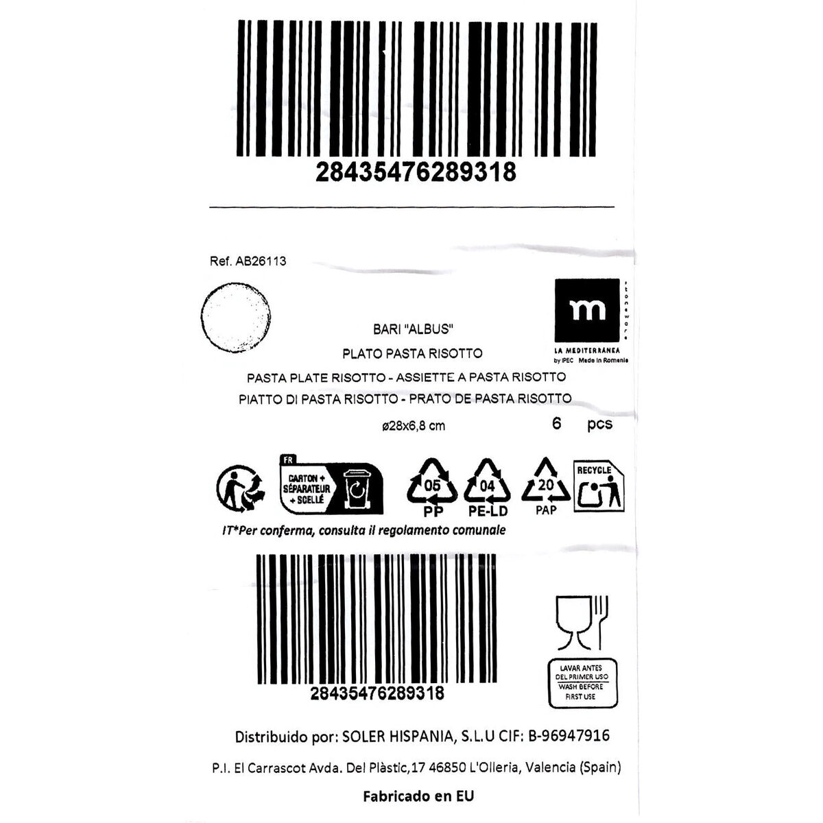 Nudelteller Weiß, 6-teilig La Mediterránea