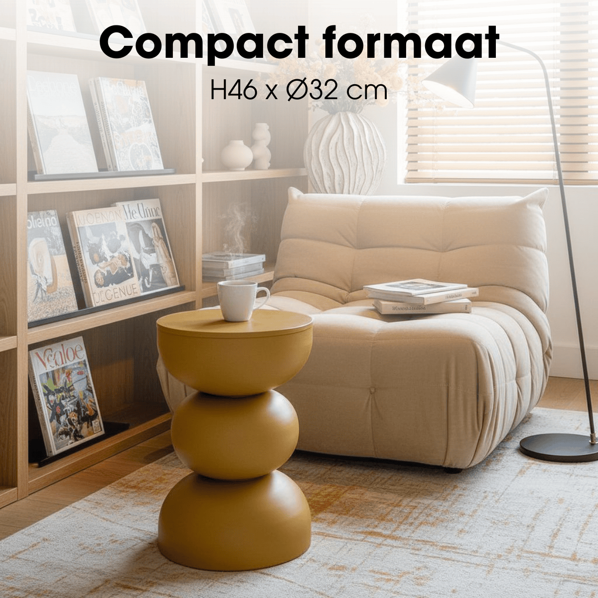 Mit einer Höhe von 46 cm und einem Durchmesser von 32 cm passt der Trima Beistelltisch Gelb mühelos in kleinere und größere Innenräume. Erhältlich in verschiedenen Farben und Stilen, können Sie Ihren bevorzugten runden Beistelltisch entdecken und Ihrem Wohnraum zusätzlichen Charakter verleihen.