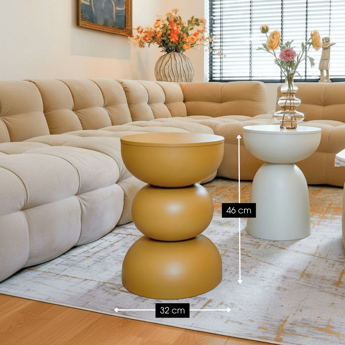 Der Trima Beistelltisch Gelb bringt sofort Wärme und Lebendigkeit in Ihren Innenraum. Dieser runde Beistelltisch aus robustem Eisen besticht durch seine tiefen, ockergelben Farbtöne, die jedem Raum einen fröhlichen und stilvollen Akzent verleihen. Ob als spielerischer Tisch neben der Couch, in einer gemütlichen Leseecke oder als auffälliger Nachttisch – der Trima Beistelltisch Gelb ist vielseitig einsetzbar. Mit einem einzigartigen, runden Design wird er zum echten Blickfang in Ihrem Wohnraum.