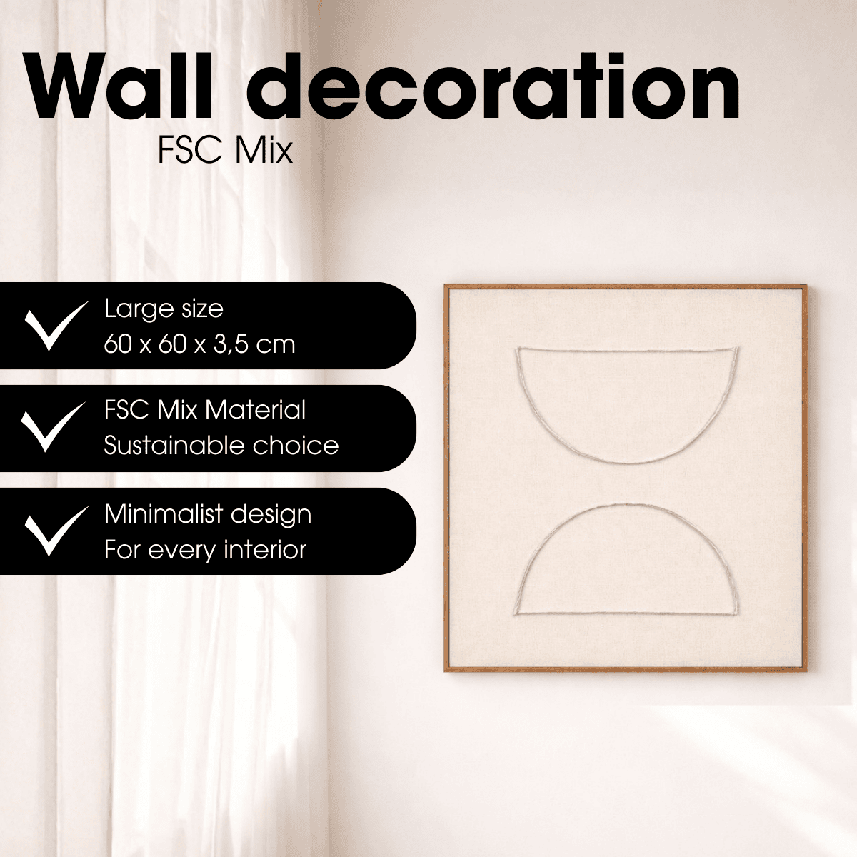 Diese beige Wanddekoration von Mica Decorations bringt Ruhe und Schlichtheit in Ihr Interieur. Das quadratische Wandobjekt verfügt über ein dezentes Relief aus zwei Halbkreisen, das für ein ruhiges und ausgewogenes Linienspiel sorgt. Dank seines minimalistischen Designs passt diese Dekoration mühelos in verschiedene Wohnstile, wie zum Beispiel skandinavisch, modern oder Japandi.