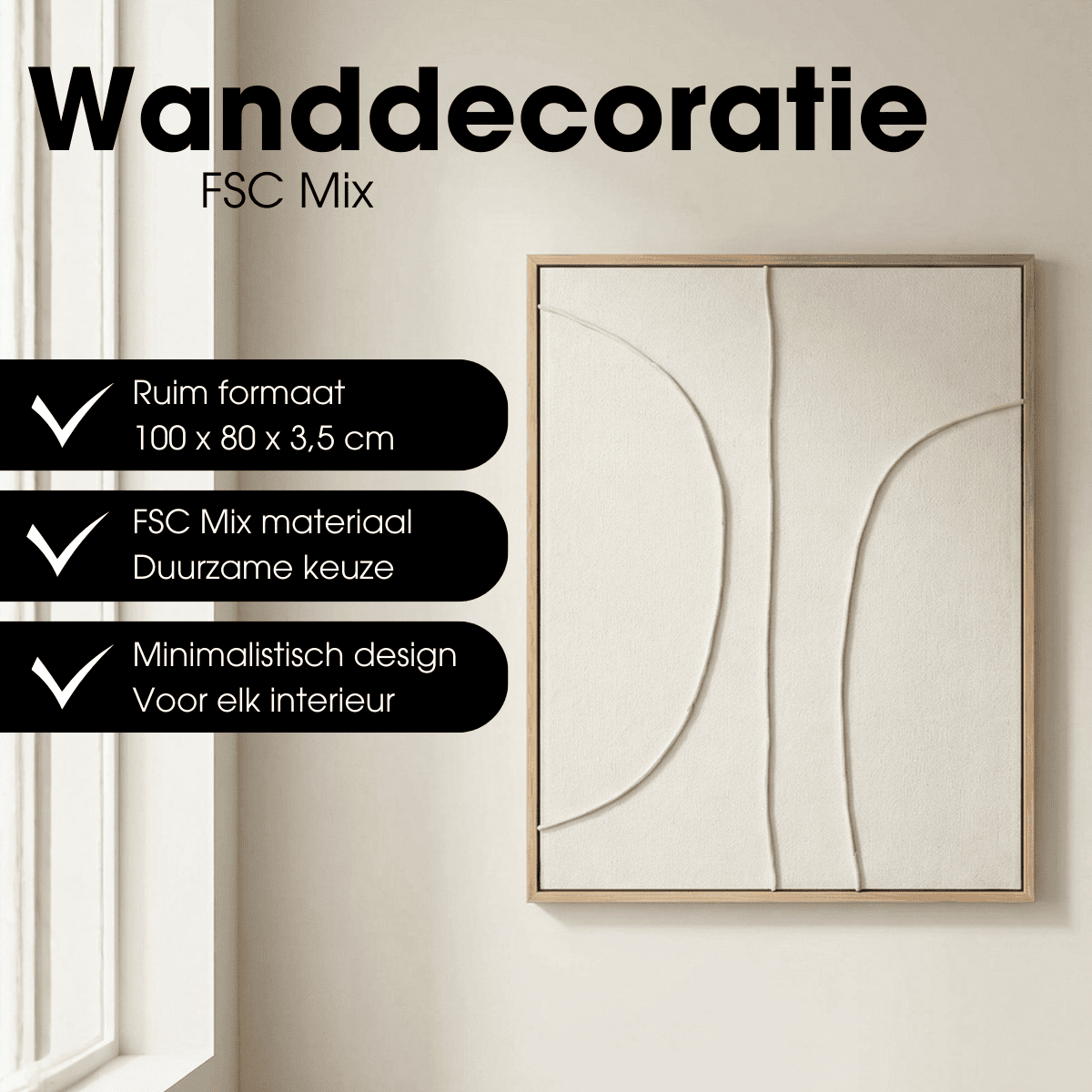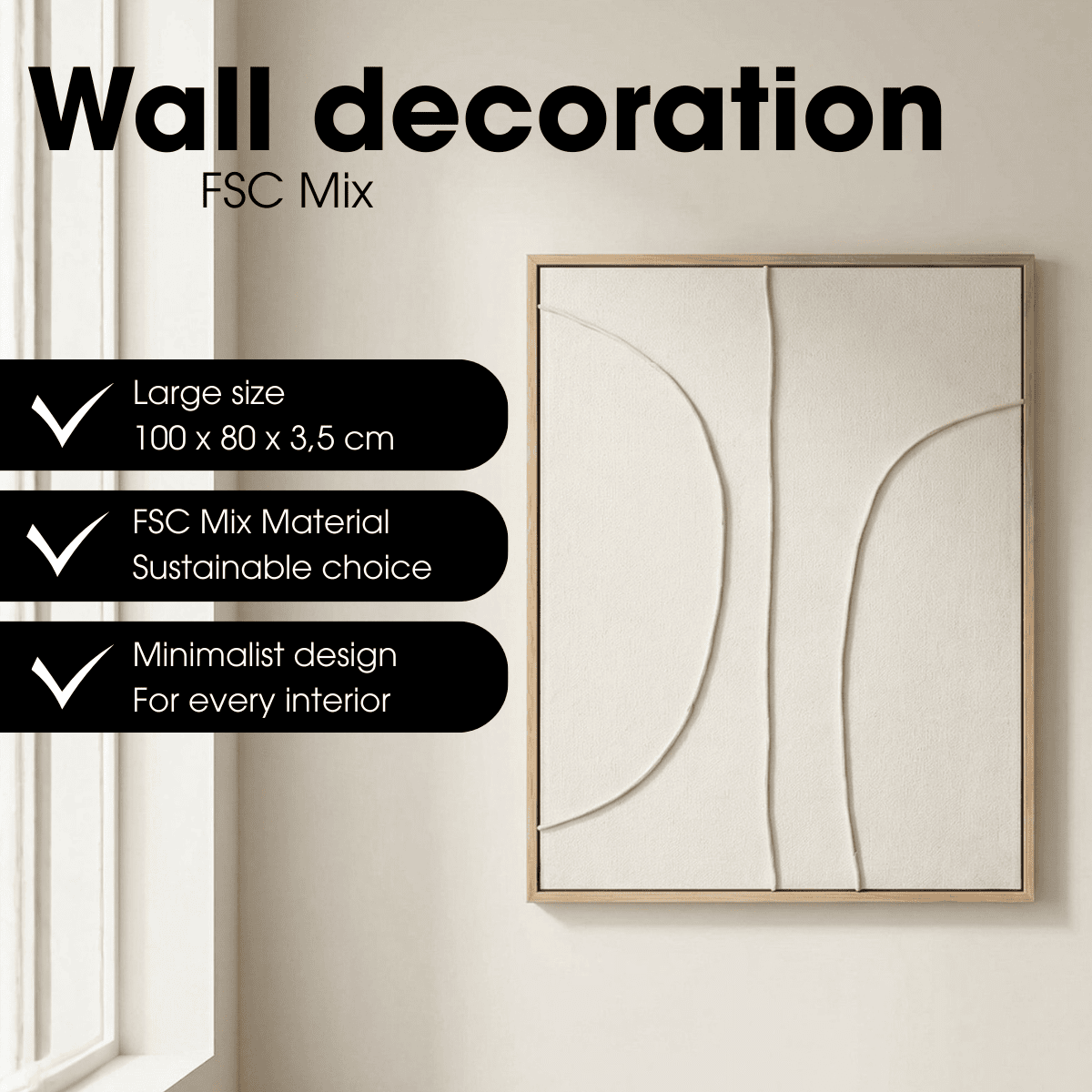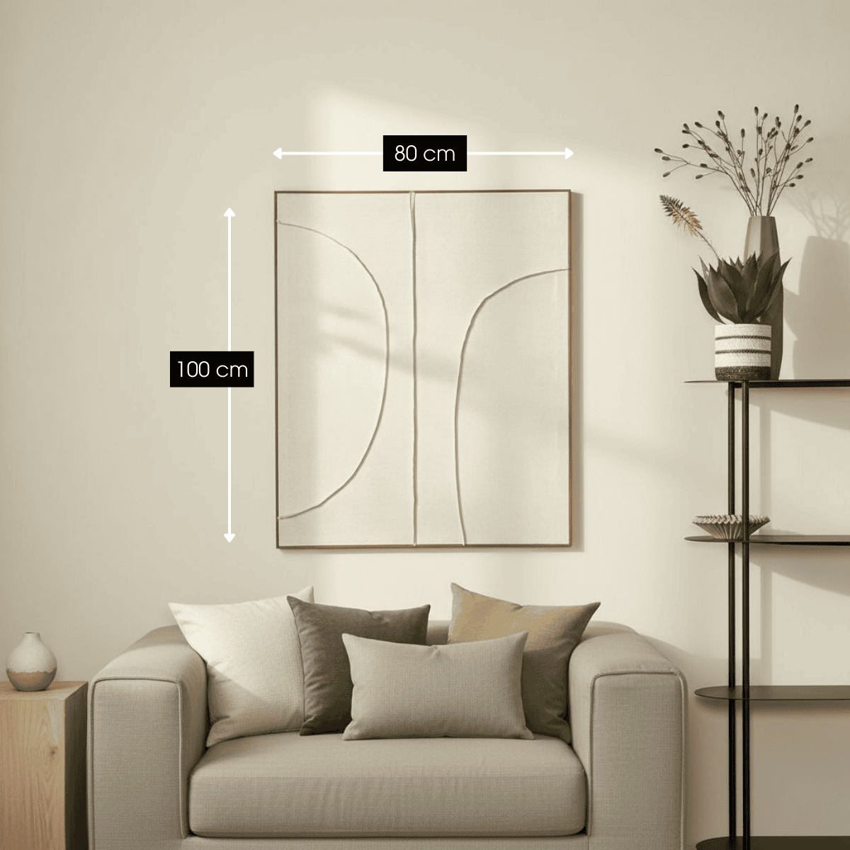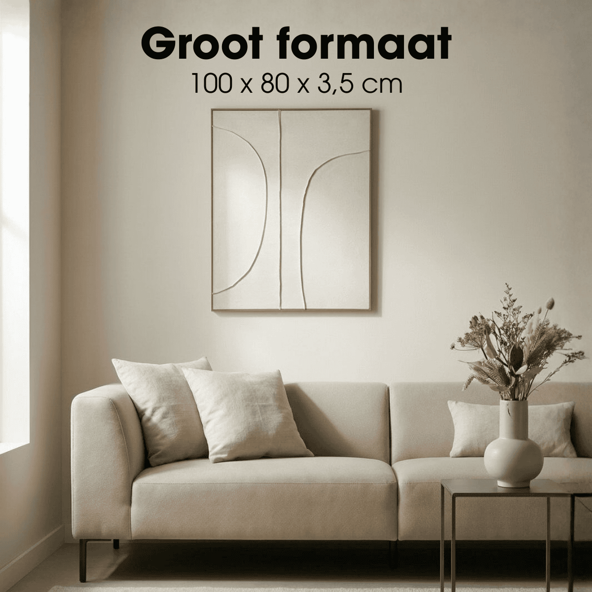 Bringen Sie Ruhe und Eleganz an Ihre Wand mit dieser Wanddekoration von Mica Decorations. Das Kunstwerk hat eine sanfte beige Farbe und ein subtiles Relief, das für ein Spiel von Linien und Tiefe sorgt, ohne aufdringlich zu wirken. Durch seine großzügige Größe setzt dieses Wandobjekt ein klares Statement über dem Sofa, einem Sideboard oder im Flur. Durch das abstrakte Design und den ruhigen Farbton eignet sich diese Wanddekoration für moderne, minimalistische und skandinavische Innenräume.