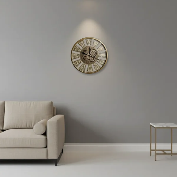Brivora Wanduhr – DKD Home Decor (Ø 72 × 8,5 cm, Weiß/Gold, Zahnräder)