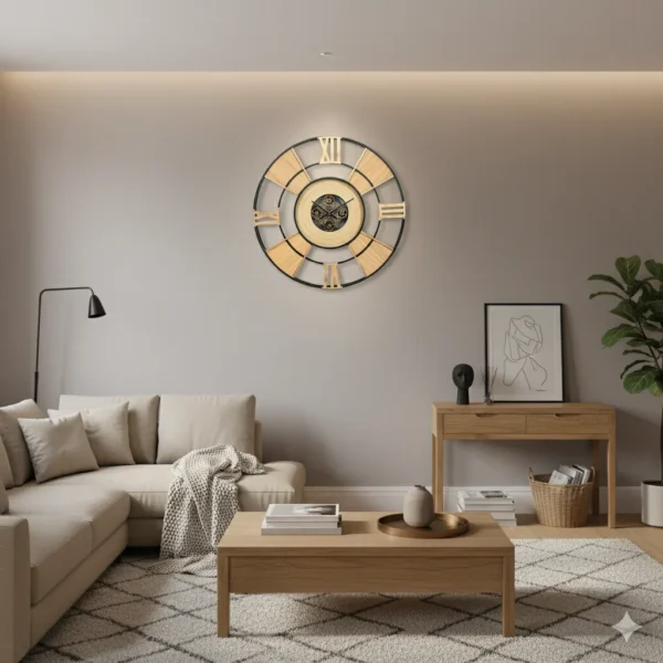 Arthira Wanduhr – Home Esprit (80 cm, Champagner, Metall & Kristall)