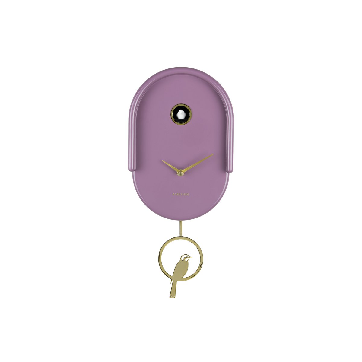 Design mit Charakter. Die von Callum MacSorley entworfene Tweet-Wanduhr von Karlsson strahlt mit ihrer glänzenden Oberfläche und den raffinierten Details Luxus aus. Die Uhr verfügt über ein Pendel und einen eleganten Vogelakzent, der zu bestimmten Zeiten zum Leben erwacht. Die runden Formen und goldfarbenen Elemente verleihen ihm einen verspielten und dennoch stilvollen Look. Ein auffälliges Objekt, das Designliebhabern sicher gefallen wird.